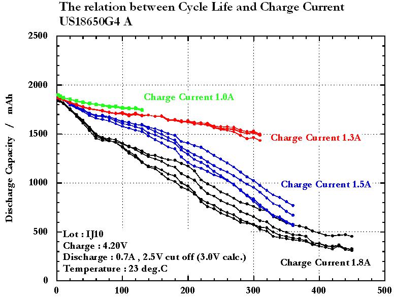 以单体锂离子电池为例, 它的充电方式是恒压恒流,恒压为4.2V,而恒流为0.1C~1C。大电流的充电会造成电池生命周期的缩短,容量的降低。下面是一个4.2V/1800MAH的不同电流充电曲线。 通常的选择是在充电完成时间允许的范围内(现在通常按8~10小时来算),选择越小的充电电流越好!