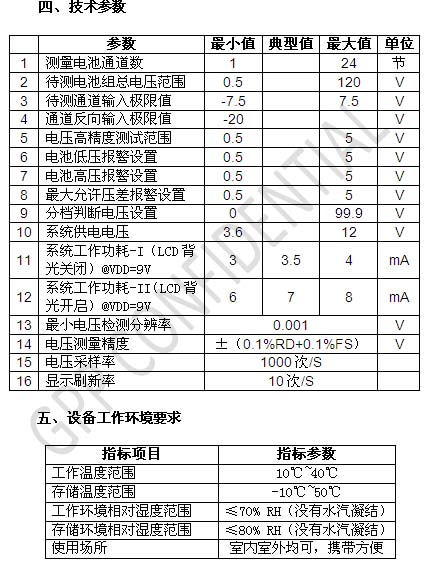 ◆ 支持电池电压安全参数设置(最高允许电压设置、最低允许电压设置、两级允许电压差设置),及蜂鸣器安全报警功能;